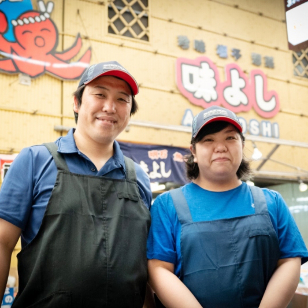 創業は四半世紀前で明石を拠点に海鮮加工品、珍味を扱う専門店として産声を上げました。当時は百貨店の催事での行商がメイン。その際にわかめ煮が大ヒットし、全国へクチコミで評判が広がり価値を高めていきました。魚の棚商店街内に初出店したのは1997年頃。現在、魚の棚商店街で系列を含め3つの店舗を展開しています。